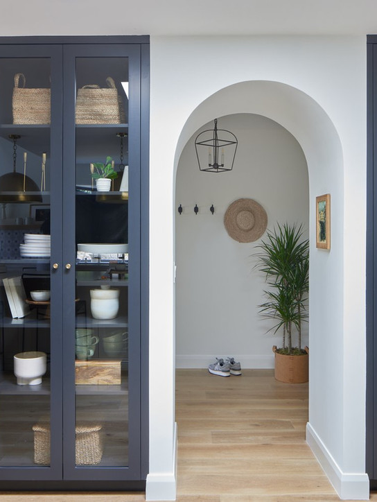 For this Spanish modern remodel in Glendale, California, we crafted a space that embraces the stunning views of the surrounding mountains and rolling hills, blending contemporary updates with the home's original character. Soft, flowing curves were thoughtfully introduced throughout—whether in the archways, rounded furniture, or custom millwork—to create a seamless connection between the new design elements and the existing architecture. Warm textures, earthy tones, and rich materials bring depth and warmth, while expansive windows invite in the natural beauty outside. The result is a harmonious fusion of old-world charm and modern elegance, offering a sophisticated yet relaxed living environment that feels truly at home in its scenic setting.